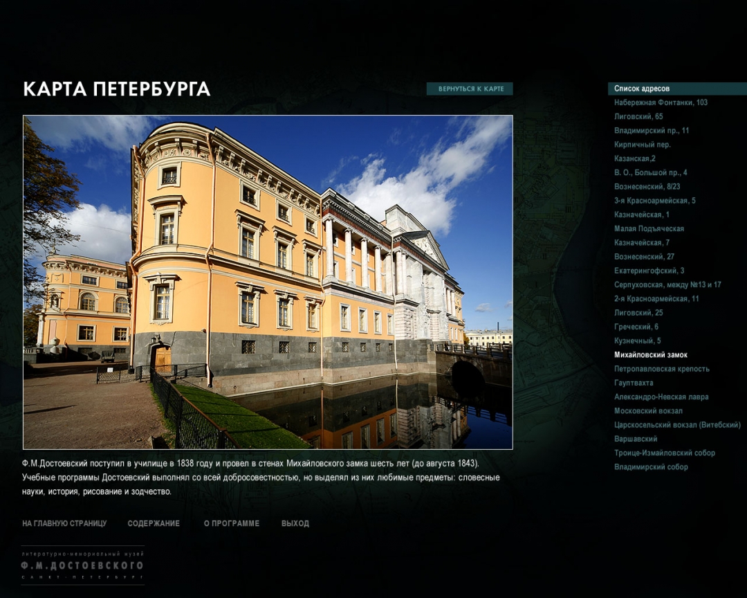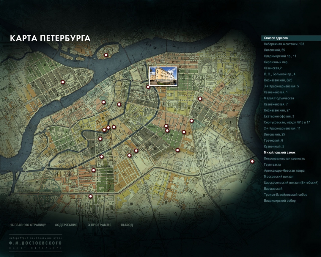 - Уличная пешеходная экскурсия «Владимирская площадь и ее окрестности в жизни и творчестве Ф.М.Достоевского»